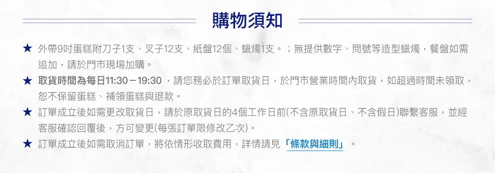 ◆ 訂單成立後恕不接受變更 數量/口味/取貨門市