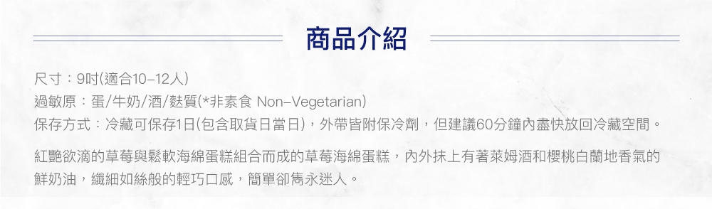 ◆ 請冷藏保存,賞味期限:1天;預購蛋糕限外帶使用